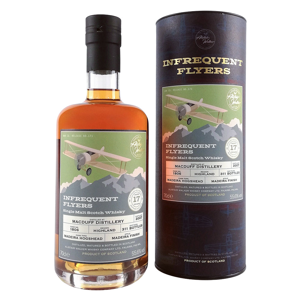 This single malt was distilled in 2007 at the MacDuff Distillery in Banff in the Highland region of Scotland. It was matured for 17 years, including 5 years and 4 months finish in a single Maderia Hogshead, resulting in notes of vanilla, dates and buttery shortbread.